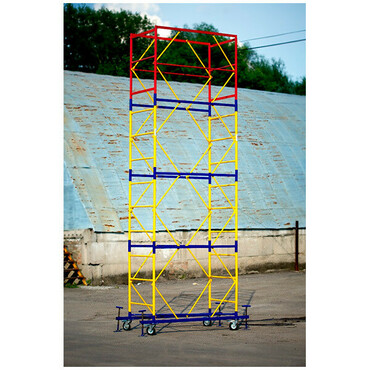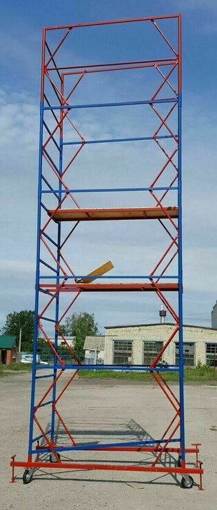 Характеристики: Размер рабочей площадки 2,0*1,2 м или 2*2 м., Максимальная нагрузка 250 кг/м2., Вышки изготовлены из стальной трубы диаметром 42 мм с толщиной стенки 1,5 мм.